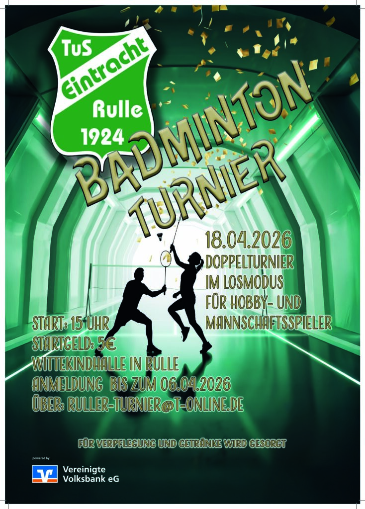 Die Badmintonabteilung wird am Samstag, den 18. April 2026 (Beginn 15 Uhr) jeweils ein Doppelturnier für Hobby- und für Mannschaftsspieler in der Wittekindhalle veranstalten. Die Doppelpaarungen werden hierbei zu jeder…