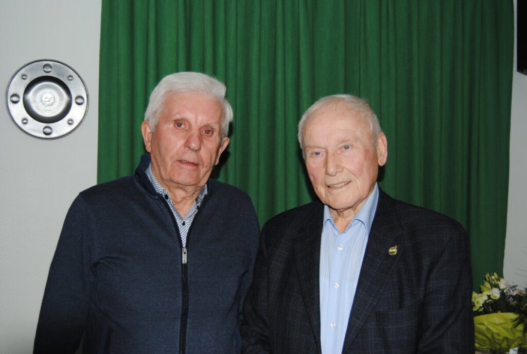 Genau wie Josef Menke und Heinrich(Heini) Schawe die 70 Jahre dem Verein die Treue halten. Sie gehörten beide der legendären Meistersmannschaft von 1961 an und halfen tatkräftig beim Bau des Clubhauses. Heini Schawe war zudem jahrelang Fußballobmann und für die Bandenwerbung zuständig. Er spielte noch lange bei den „Alten Herren“, bis er seine neue Leidenschaft Tennis für sich entdeckte. Auch als Förderer und Sponsor hat er den Verein immer unterstützt, und ist seit 2020 Ehrenmitglied im Verein.