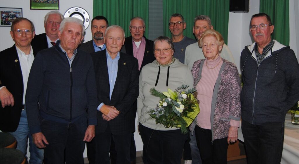 Seit 60 Jahren ist Elisabeth Schnieder im Verein, die ehemalige Turnerin, machte später „Nordic Walking“ und backte regelmäßig Kuchen u. Waffeln für etliche Veranstaltungen. Noch 5 Jahre länger im Verein ist Hubert Riemann. Der ehemalige Fußballer und frühere Kassenwart im Vorstand half seinerzeit beim Clubhausbau und war nach Fertigstellung Mitglied im Clubhausteam. Heute ist er regelmäßiger Zuschauer bei den Heimspielen der „Ersten“.